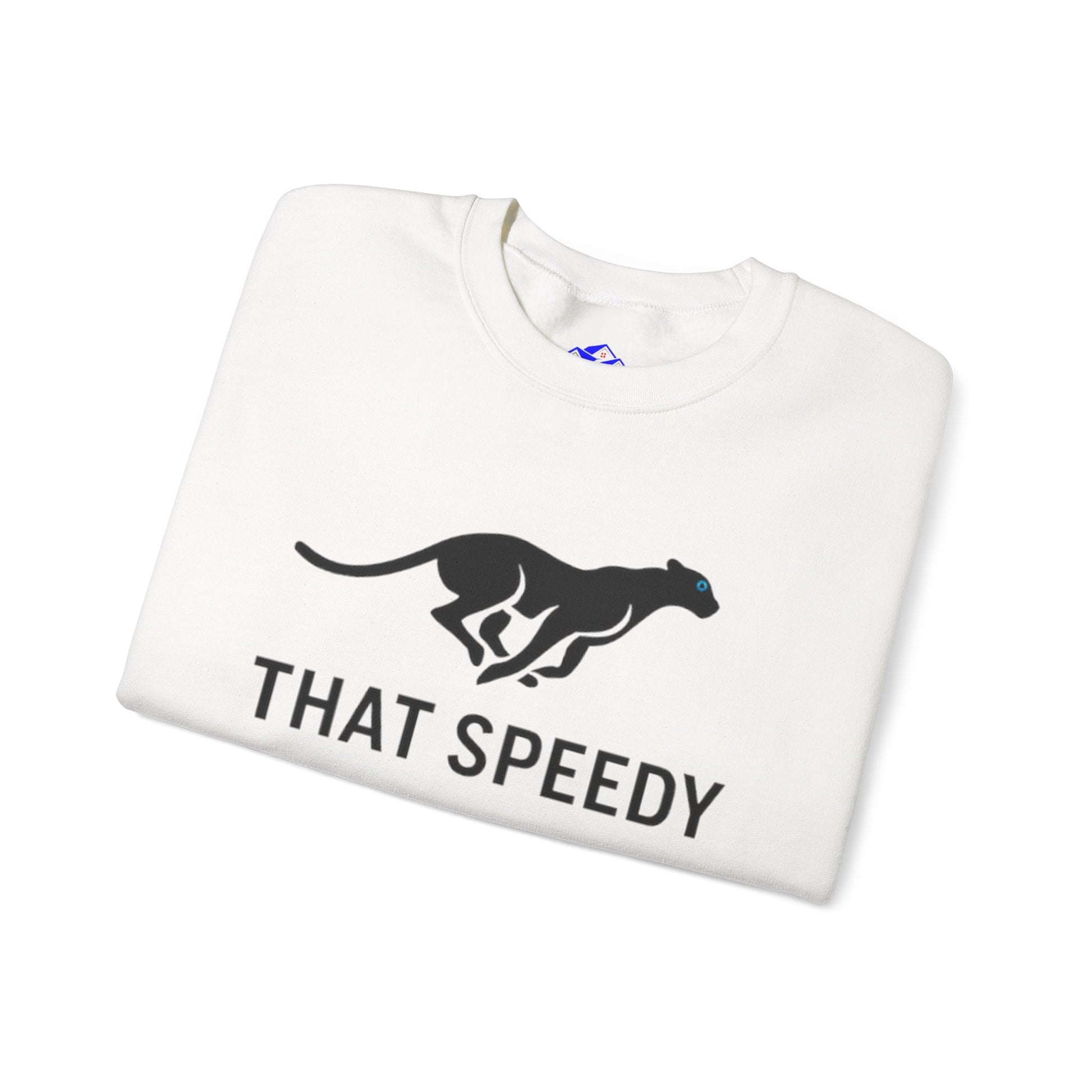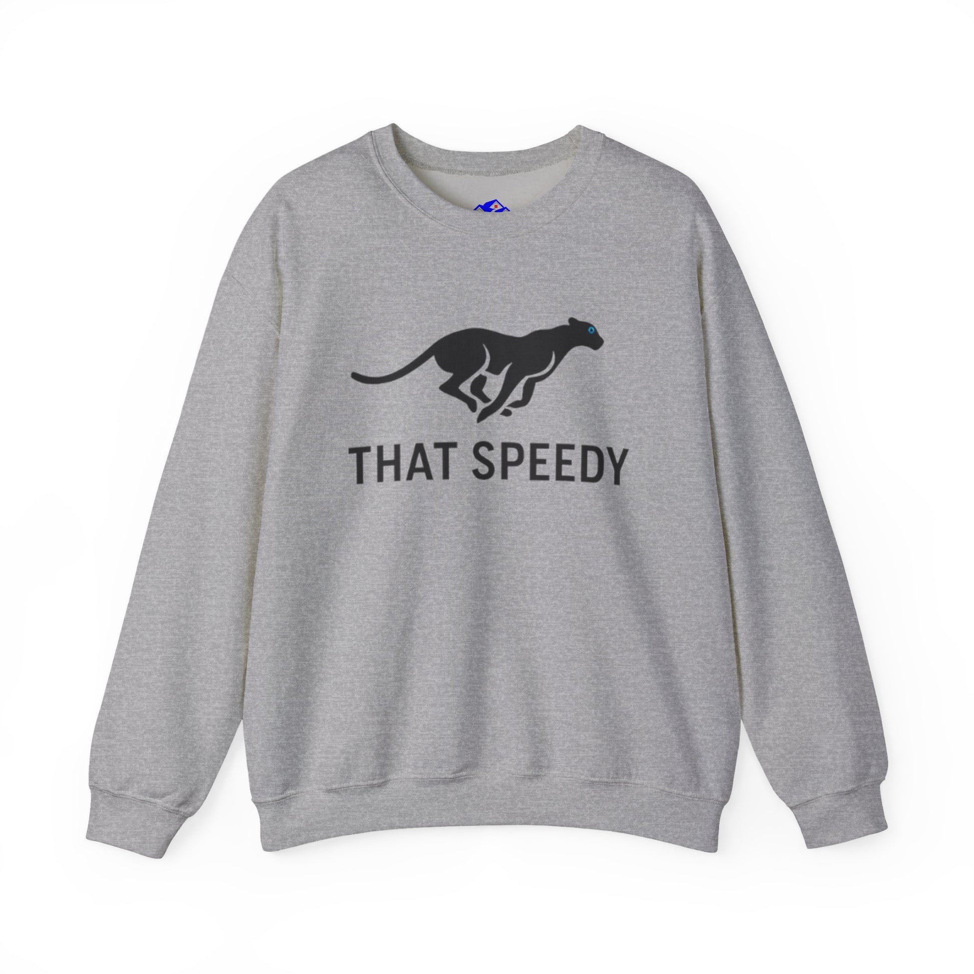 Lightweight warmth and easy-going style meet playful speed. This crewneck sweatshirt features a clean, minimalist silhouette with a bold running greyhound motif and the cheeky line “THAT SPEEDY” across the chest. Soft, midweight cotton-poly fabric drapes comfortably for everyday wear while ribbed collar and cuffs hold their shape. It layers under a jacket for chilly morning runs or stands alone for relaxed weekends at the track, creating a quiet statement for anyone who loves motion, fast dogs, or a tongue-in-cheek nod to pace.